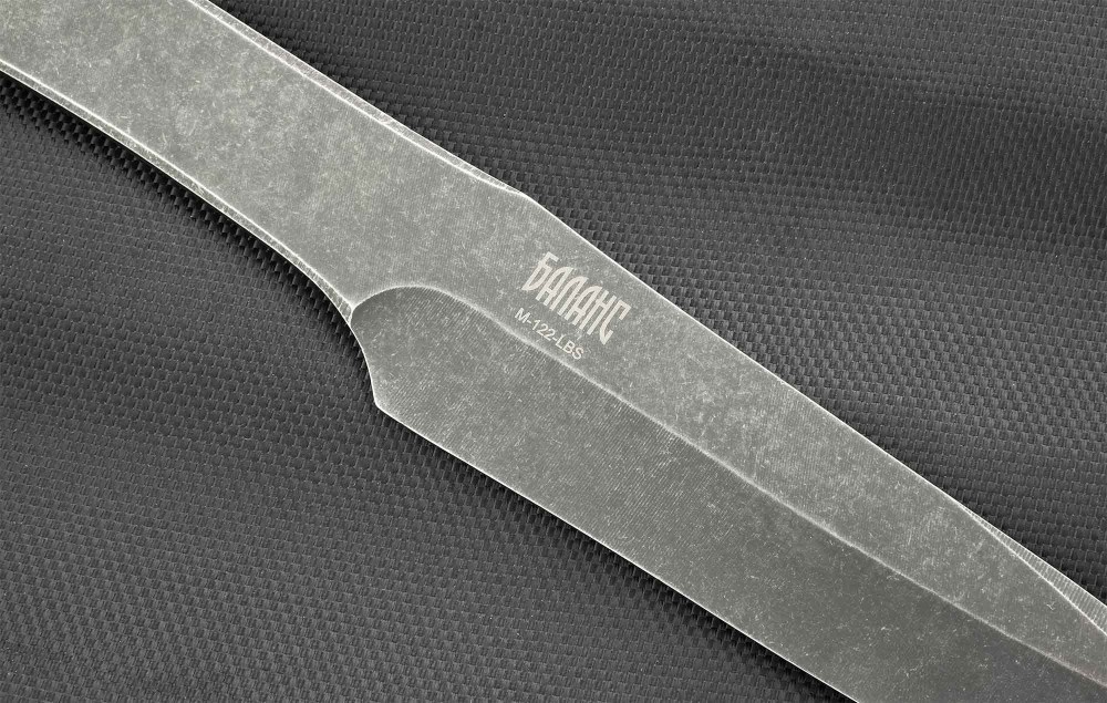 Заточка режущей кромки ножей набора М-122 ЛБС отсутствует, что характерно именно для изделий данного назначения. На рукоятке присутствует сквозное отверстие, позволяющее закрепить на ней обмотку. На месте гарды каждый нож имеет гравировку с головой льва. Ножи комплектуются мягкими ножнами, каждый нож устанавливается в отдельный карман. Ножны фиксируются ремнями. Длина каждого ножа 28 см, вес 0,22 кг.
