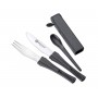 Boker Snac Pac легко помещается в ланч-бокс, рюкзак или перчаточный ящик. Полный набор столовых приборов состоит из ножа из нержавеющей стали 420 , вилки и десертной ложки. Компактный набор можно хранить в практичном синтетическом футляре из полипропилена до и после использования.