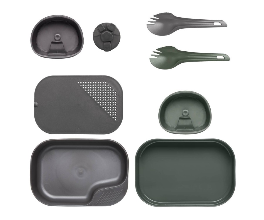 Полностью укомплектован. Включает тарелку с крышкой, кружку Fold-A-Cup®, разделочную доску, шейкер и вилку. Компактный набор посуды CAMP-A-BOX® отвечает всем требованиям путешественников и поставляется в трех компактных вариантах с практичным дизайном.