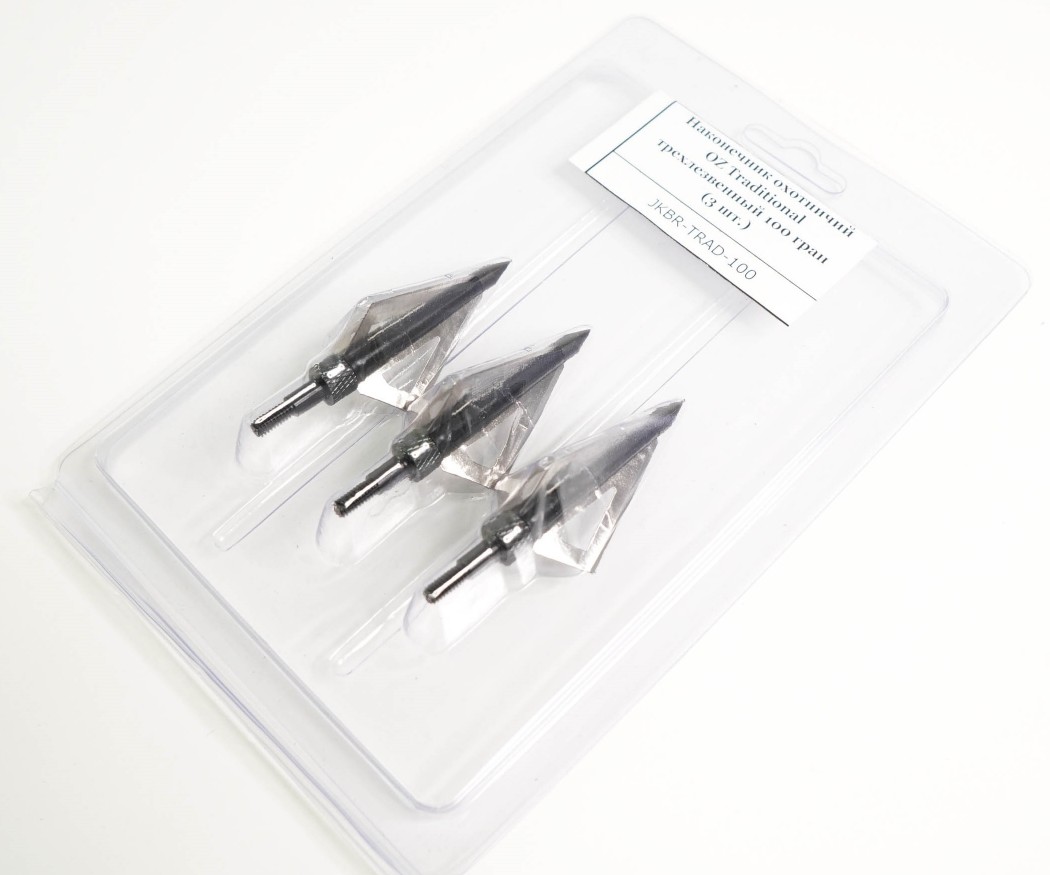 Охотничий наконечник OZ - это самый популярный тип фиксированных наконечников, которые выпускались когда-либо. Наконечник состоит из битка, алюминиевого сердечника, трех тонких лезвий и гайки, которая фиксирует лезвия на сердечнике. Отлично подойдет для стрельбы на коротких дистанциях или с засидки. Легко разбирается и чистится, а также легко выбрасывается после деформации, так как стоимость этих наконечников самая низкая на рынке.