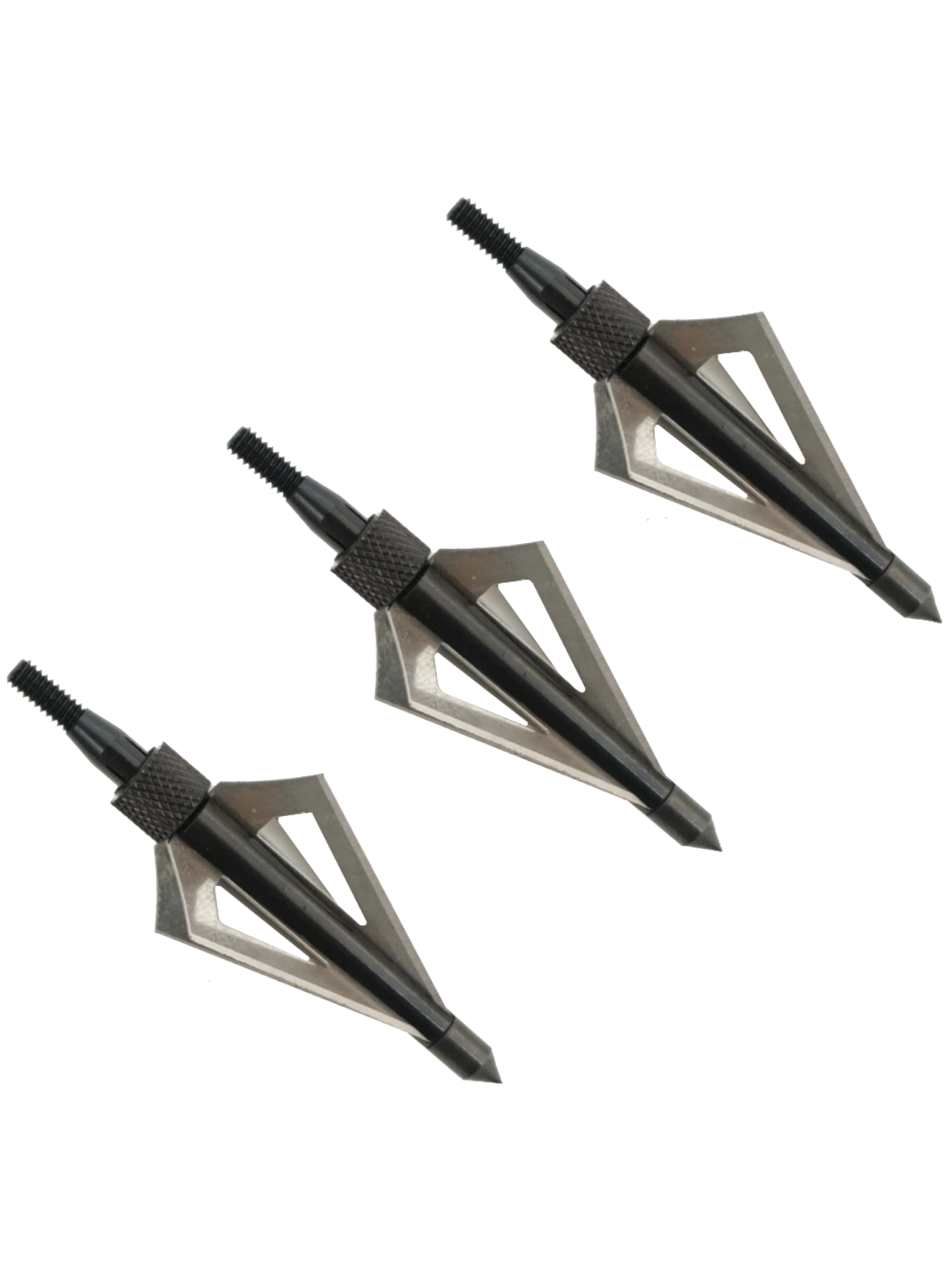 Конусовидная форма острия и боковых лезвий может не только свободно проникать в мягкие ткани, но даже рубить кости животного. В случае же повреждения одного из лезвий его довольно просто заменить. Разборность конструкции позволяет легко бороться с остатками загрязнения устройства. Поставка наконечников производится в блистере по три единицы в каждом.