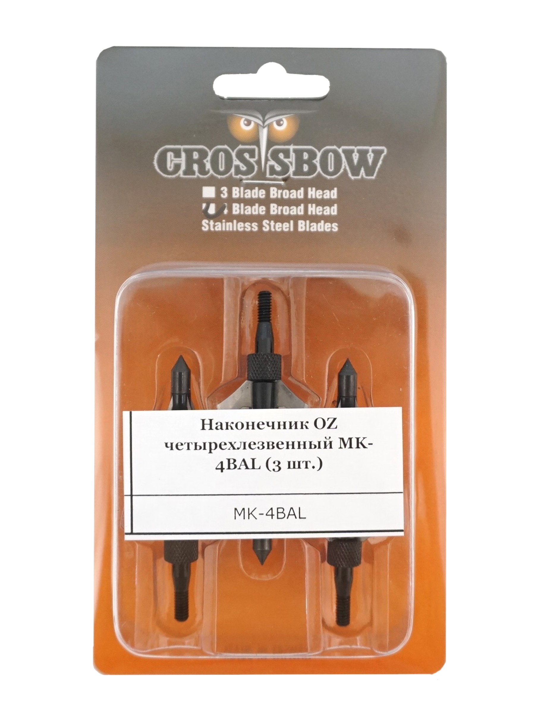 Четырехлезвенный наконечник OZ предназначается для использования во время охоты. Его установка производится на арбалетные стрелы, хотя не запрещено применение и для лука. Для производства изделия использована прочная легированная сталь.