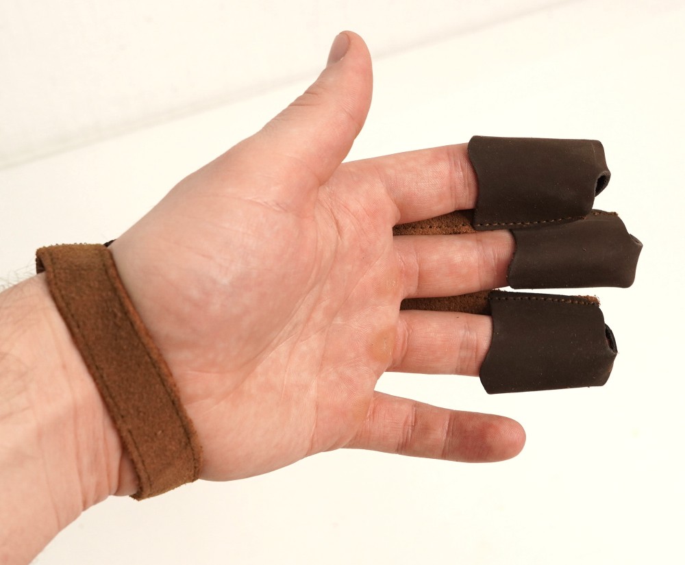 Напальчники защищают пальцы от повреждения об тетиву, позволяют лучше фиксировать ее в руке в момент прицеливания. Подходят как для правши, так и для левши.