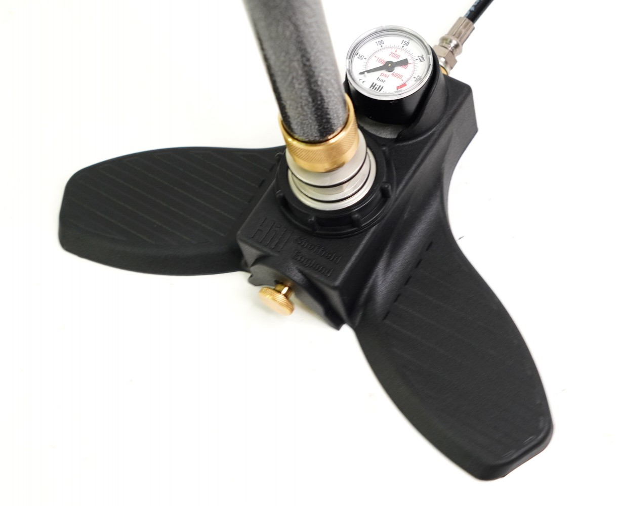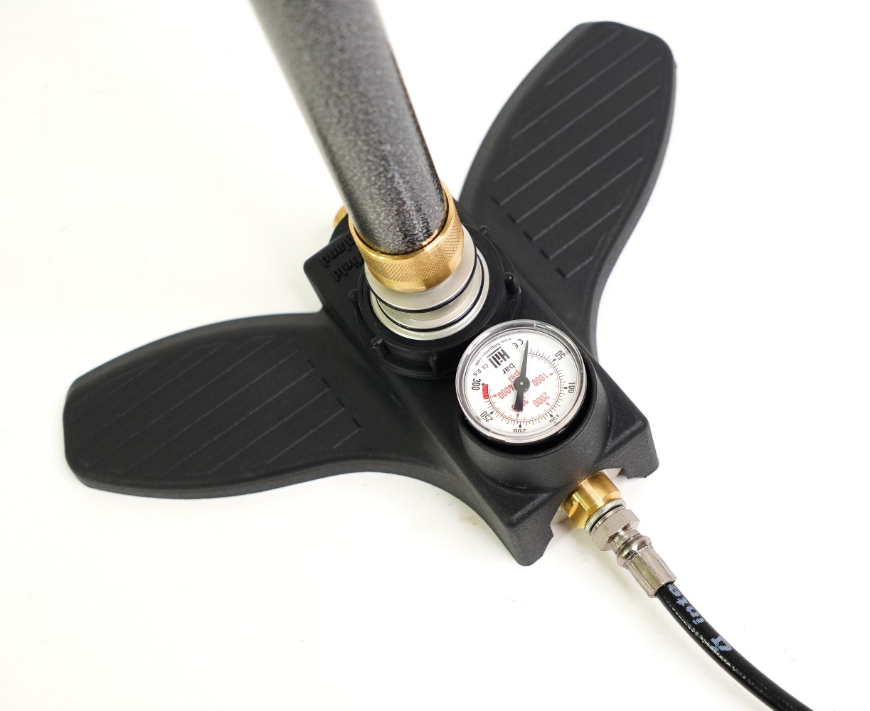 Надежный и производительный насос высокого давления со встроенным манометром, предназначенный для быстрой заправки РСР пневматики.
