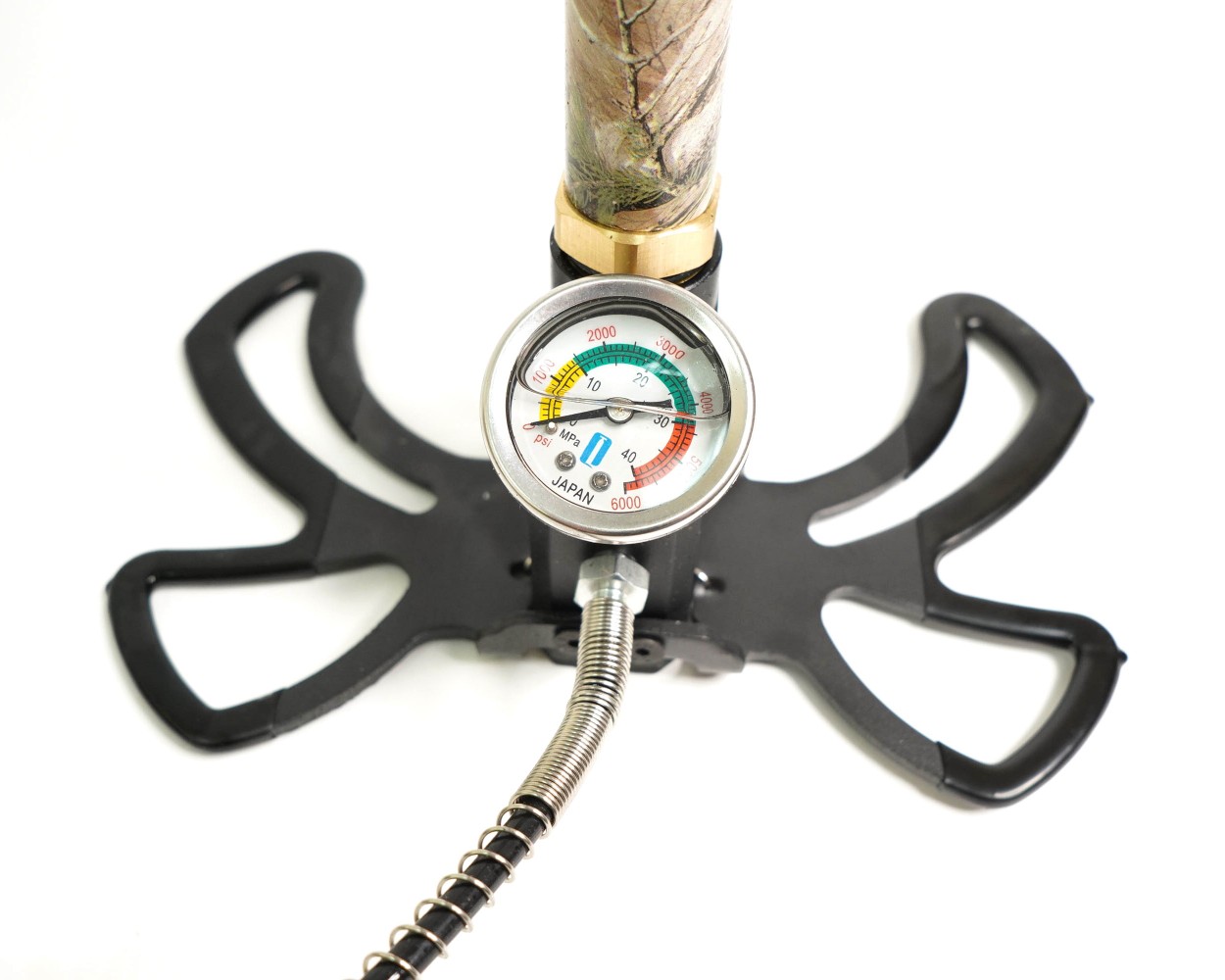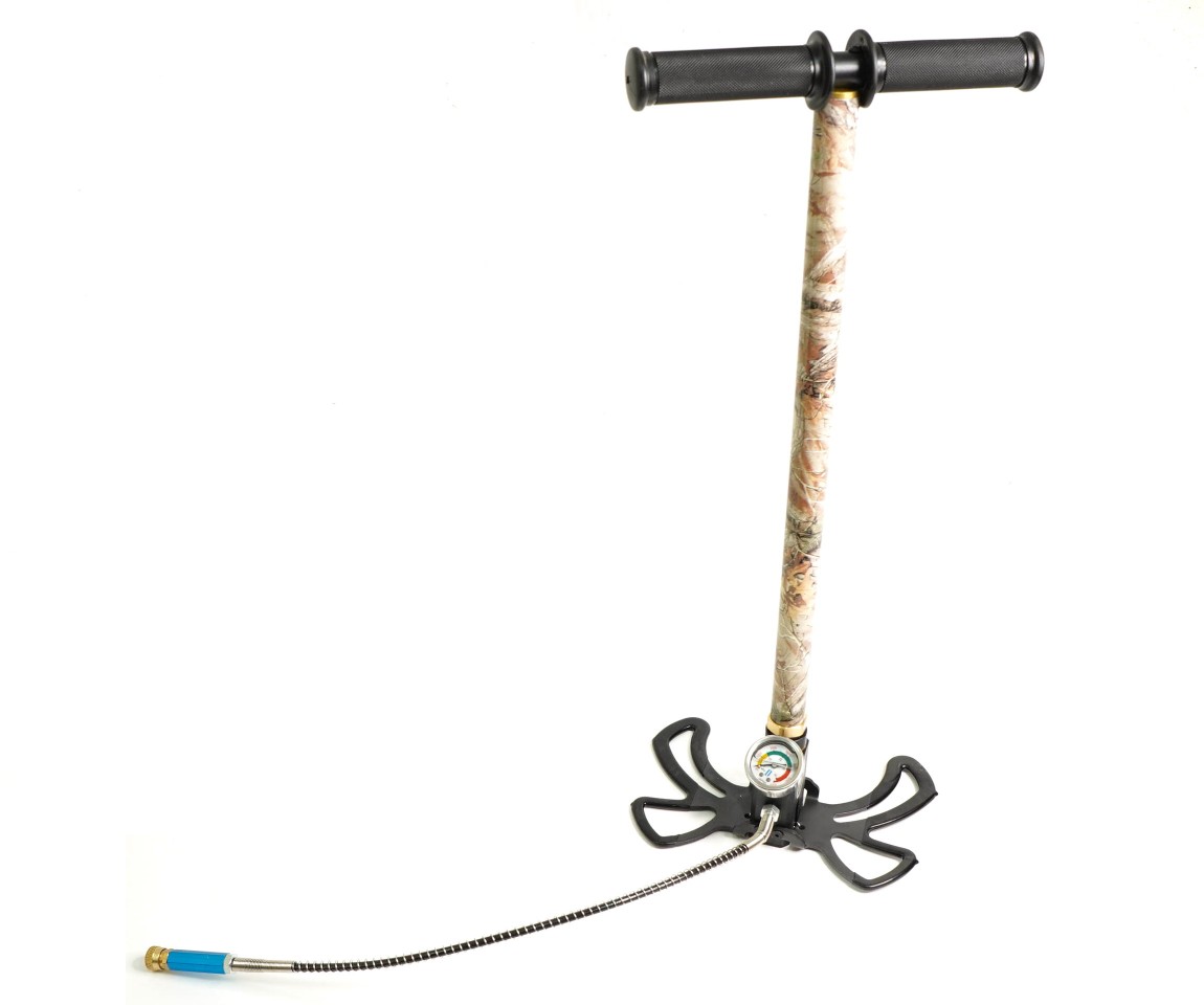 Насос BH-PPD имеет также манометр, позволяющий контролировать уровень давления при заправке. Основной материал насоса – нержавеющая сталь, рукоятка изделия прорезиненная. Цвет – камуфляж. Модель имеет складную подпружиненную подножку.