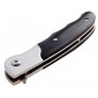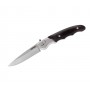 Особенностью данного ножа является зеркально отполированная поверхность клинка, что придает изделию эффектный и дорогой вид. Рукоятка стальная, с накладками из стабилизированной древесины – материала, устойчивого к влаге и повреждениям. Цвет накладок венге, он отлично сочетается с зеркальной поверхностью клинка. Наличие предохранителя обеспечивает безопасность использования инструмента, исключая случайное выкидывание клинка или его закрытие.