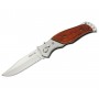 Полуавтоматический складной нож Омуль A-152 с деревянной рукоятью. Заостренное лезвие «боуи» отлично служит и рыбакам при разделке рыбы и охотникам для ошкуривания и потрошения мелкой дичи.