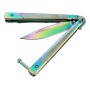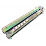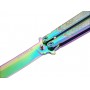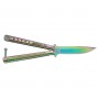 Нож «бабочка» в неординарной переливающейся расцветке «нитрид титана». Благодаря широкому лезвию «боуи» его можно использовать не только для фигурного вращения, но и в реальных походных условиях. Внешне модель Strike B-113CS вызывающе красива.