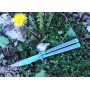 Такой окрас ей придаёт специальное покрытие, которое, помимо всего прочего, защищает нож от воздействия влаги и мелких повреждений. Рукояти к хвостовику крепятся с помощью болтов, что увеличивает срок службы подвижных соединений. На задней части безопасной рукояти есть клипса для крепления на пояс.
