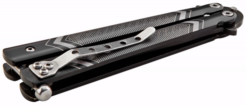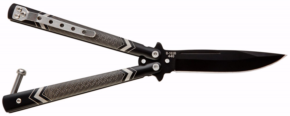 Нож балисонг Чёткий расклад B-103B – это универсальный инструмент, оригинальный по конструкции и удобный в повседневном использовании. Нож-бабочка популярен благодаря возможности вращать его, это культовый нож в среде подростков и любителей необычных вещей. За счет оригинальной конструкции и благодаря рифлению на поверхности рукоятки пальцы не соскальзывают в процессе его использования.
