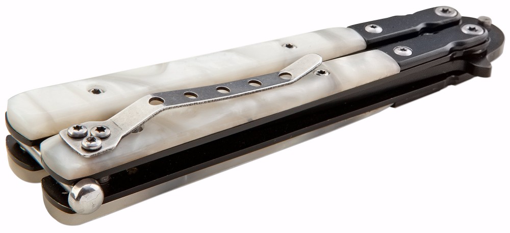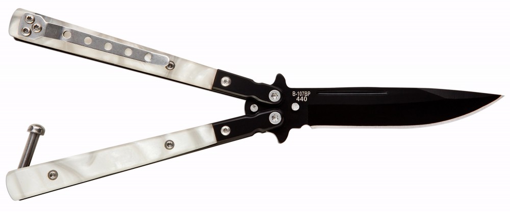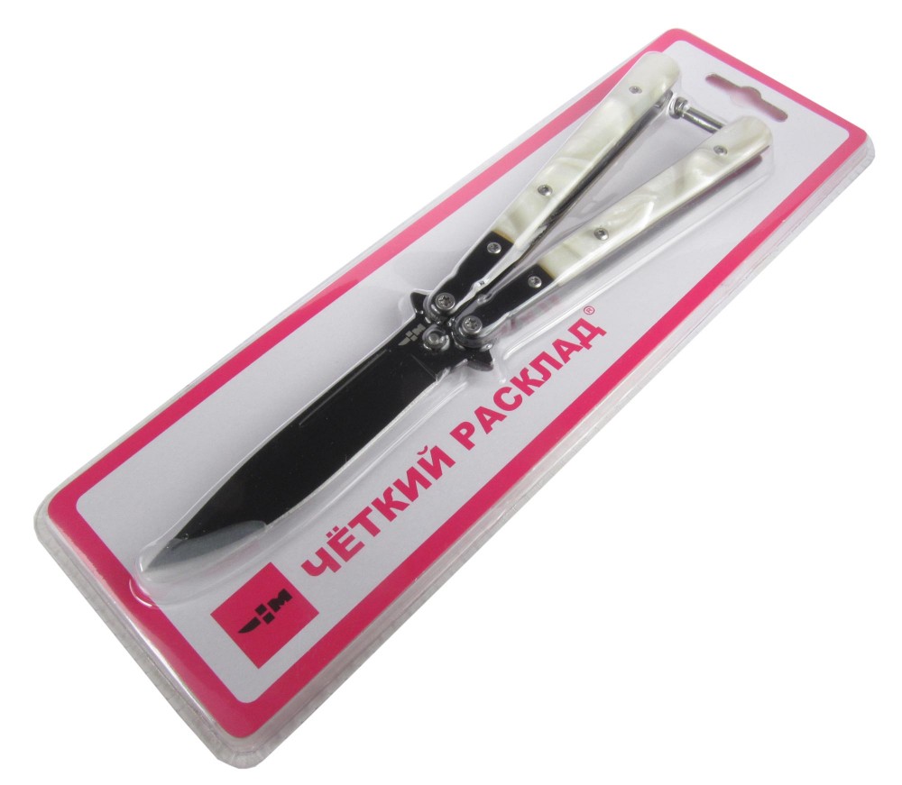 Нож балисонг Четкий расклад B-107BP – это оригинальное по своей конструкции изделие, нож-бабочка, надежный и выносливый. Свое название нож получил благодаря его легкости, позволяющей вращать нож в руке. Инструмент подвижный, удобный в использовании, имеет большое количество винтов, регулировка которых позволяет сделать ход ножа максимально плавным и удобным для жонглирования.
