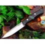 ● Клинок с широкими спусками на 2\3 ширины лезвия по форме повторяющими вогнутую линзу и длинной режущей кромкой дает минимальный по толщине срез, превращая данную модель в непревзойденный нож для разделки добычи;