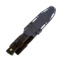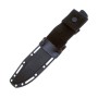 В комплектации с ножом идут ножны, фиксирующиеся на клинке при помощи хлястика с кнопкой и могут крепиться на ремне, рюкзаке или экипировке.