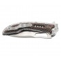 Вместе с уникальным клинком получила данная версия и удивительно качественную рукоять с покрытием из текстолита G-10, устойчивого именно к внешним факторам всевозможным. В ней же встроен легкий раскладной механизм, позволяющий перемещать, а затем надежно фиксировать клинок в любом положении. Представленная версия ножа имеет красивую отделку и будет замечательно сочетаться с другими элементами для охоты, походов, быта.