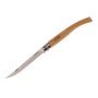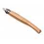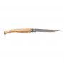 Opinel №12 не требует большого ухода за собою, поскольку создан из практичных материалов. Его лезвие не ржавеет (сталь Sandvik 12C27), легко затачивается. Рукоятка ножа выполнена из натурального бука. Она светлая, покрытая специальным защитным составом.