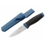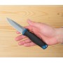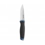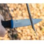 Эргономичная рукоять сделана из материала ПП+ТПР. ТПР или термопластичная резина – это синтетический полимер, обладающий свойствами резины и пластика. В перчатках он используется как слой, защищающий руку от ударных воздействий – способен поглощать и рассеивать энергию удара. Работать таким ножом безопасно и удобно. Ножны полипропиленовые.
