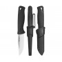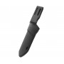 В изготовлении рукоятки применен материал PP+TRP. Этот материал представляет собой сочетание синтетического полипропилена и прорезиненного покрытия. Сочетание этих материалов известны своей износостойкостью и хорошим сопротивлением к воздействию температур. Рукоятка имеет ребристую поверхность, благодаря чему она не скользит в руке, даже при длительном применении. В рукоятку встроена выемка для темляка и добавлены насечки перед частью с лезвием для удобного расположения большого пальца. Ножны также изготовлены из полипропилена, только без добавления резины.
