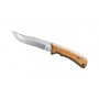 Чаще всего хвост обладает такой толщиной, как и клинок. Ручка сделана из особенного древесного пластика - главным элементом которого является дерево и особая фенольная смола. Данный материал быстро вбирает разные вибрации и удары, что усиливает контроль над ножом. Ручка не станет выскальзывать при сильной влажности. Вид изделия - Hunting knife. Материал ножен - кожа отменного качества.