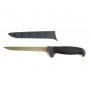 Kershaw K1247 считается очень востребованным и популярным на кухне. В ноже для филе имеется достаточно гладкий край, а также пружинистое и узкое лезвие. Универсальность ножа делает его пользующимся спросом. Подойдет также для приготовления рыбы, мяса. Рукоять состоит из текстолита, имеются резиновые текстурированные вставки Texture. Это позволяет избегать скольжения при разделке жирных продуктов. Satin finish является видом покрытия. Поставка ножа осуществляется в пластиковых ножнах.