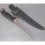 Нож марки Kershaw Fillet Knife K1257 относится к 7-дюймовым филейным ножам. С помощью него вы сможете отлично очистить и с легкостью филировать рыбу больших и средних размеров. Для изготовления клинка использовалась японская нержавеющая сталь, обладающая превосходной гибкостью. Поэтому, разделка рыбы станет для не работой. а легким занятием. Благодаря данному типу стали обеспечивается максимальное сгибание лезвия, при этом вам не стоит опасаться рисков разлома. Кроме этого, лезвие с легкостью пронзает тело любой рыбы и гарантирует получение отличного филе. К тому же, сталь устойчива к коррозии, а это очень важно при проведении работ в помещениях повышенной влажности.