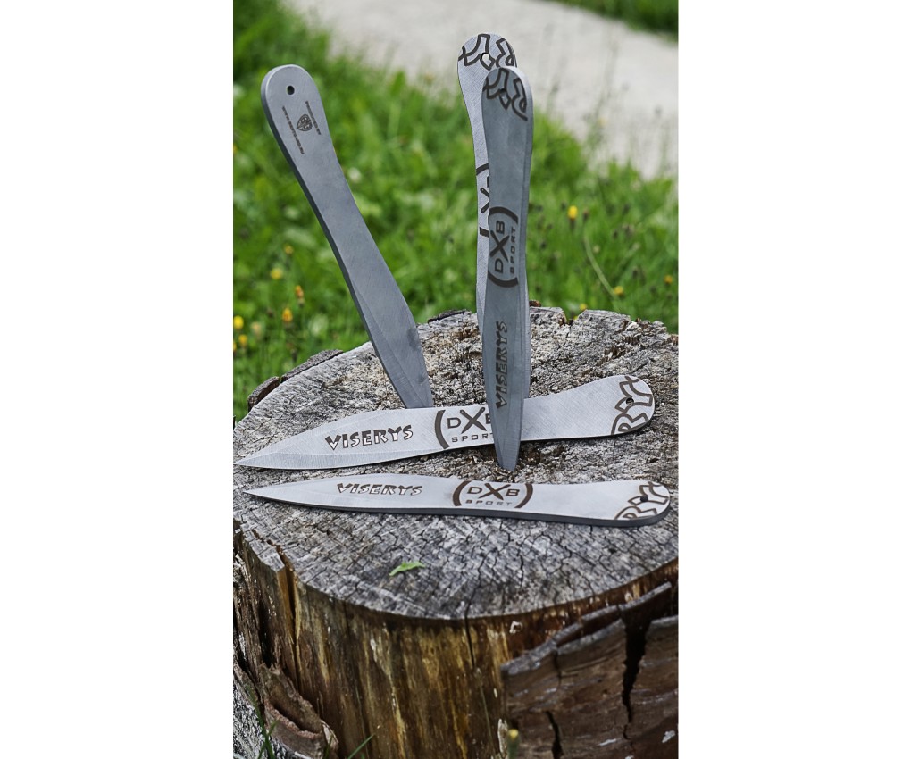 Нож "Viserys" разрабатывался для безоборотного метания и выхода спортсмена на дальние (7+м) дистанции. Инновационная идея данного ножа позволяет одинаково активно использовать обе стороны обуха. Плоская сторона позволяет работать и управлять целеуказанием на коротких дистанциях (3-5 м) и изогнутая сторона позволяет выходить на дистанции 10+м. Спортсмен выбирает нужный изгиб ножа в зависимости от дистанции.