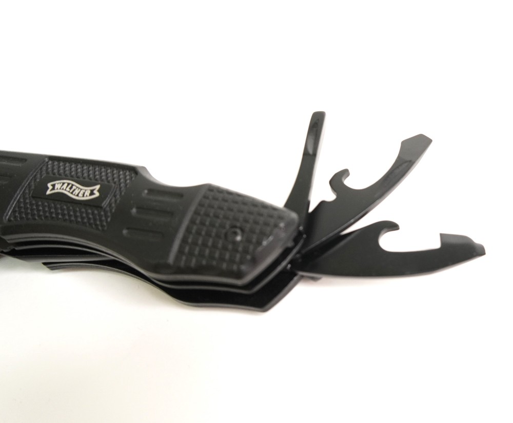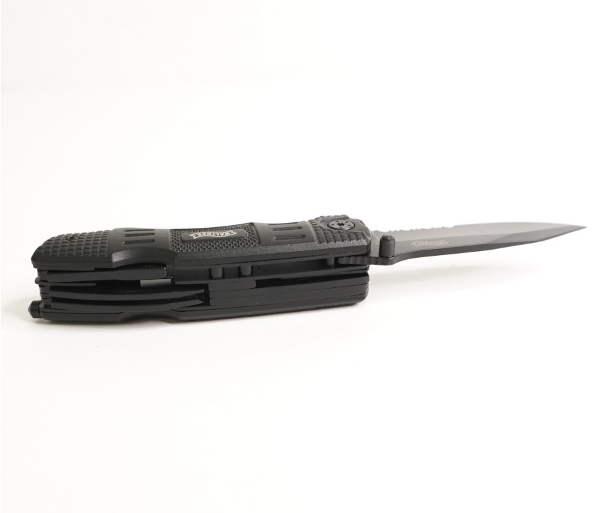 Клинок ножа Walther MTK имеет каплевидную форму Drop Point, такой клинок отличается прочностью, и отличается отличной колющей способностью. Установлен замковый механизм Liner Lock – простой конструкции и высокой надежности, легкий в чистке. В качестве дополнительных опций здесь установлена отвертка с различными насадками, плоскогубцы и открывалка для бутылок.