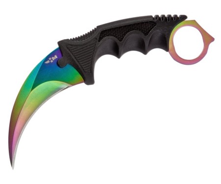 Нож нескладной керамбит H-230 GRAD – это модификация популярного сегодня благодаря компьютерной игре Counter-Strike ножа, оригинальный и узнаваемый инструмент. Нож керамбит появился в Западной Суматре, и носил ритуальный характер. Изделие отличает особая изогнута форма, клинок имеет конфигурацию, напоминающую коготь тигра (отсюда и название). Рукоять черного цвета выполнена из качественного пластика с выемками для пальцев и кольцом для указательного пальца.