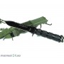 | Комплектация (?): | нож, ножны, 2 дополнительных вспомогательных ножа скелетного типа, рогатка для охоты на мелкую дичь, зеркальце для подачи сигналов, кусок прочного синтетического шнура |