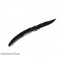 Рукоять изделия имеет необычную форму и выполнена из металла с накладками из эбенового дерева. Длина ножа в разложенном виде достигает 225 мм. Благодаря замку типа Liner-Lock, прибор не поранит ладонь.