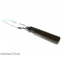 Нож складной S135 Цирюльник, выполненный распространенной фирмой «Pirat», из-за необычной формы клинка, предназначен для предметной резки различных материалов и даже для бритья, однако из-за отсутствия острия он не предназначен для прокола.
