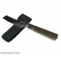 Вышеперечисленные качества ножа S135 «Цирюльник» дополняет удобный охват небольшой аккуратной и простой по форме рукояти, изготовленной из тандема металла и эбенового дерева в качестве накладок. В области втулки присутствуют металлические вставки, а в области оголовка - сквозное отверстие под шнурок, которое способствует практичному ношению прибора. По ширине рукоять - 28 мм, толщине - 20 мм.