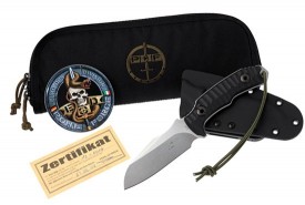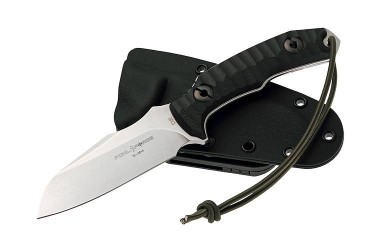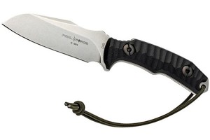 В виде рукояти выступает клиночный хвостовик, который отделывается при помощи черного G-10 стеклотекстолита. Его производство осуществляется из эпоксидной смолы, а также из стеклоткани. Отмечается прочность, упругость и влагостойкость материала. При проведении пескоструйной обработки появляется стеклотканевая структура, которая обеспечивает декоративность. Два выступа ступенчатого типа есть на нижней части кромки. Они позволяют удобно разместить пальцы, а на месте лезвия есть упор. Имеется страховочный шнур, куда продевает темляк.