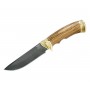 Ценителей ножей недаром привлекают клинки из булатной стали. Этот сплав по прочности не уступает чугуну, но, в отличие от него, обладает превосходной гибкостью и упругостью. В модели «Лесник» широкое булатное лезвие с прямым обухом дополняет светло-коричневая рукоять из ценной древесины зебрано и латунное литье под золото. Вместе все компоненты превращают этот нож в шикарное произведение рук мастера, который может стать не только украшением коллекции, но и рабочим инструментом охотника. В комплект входят кожаные ножны с креплением на ремень.