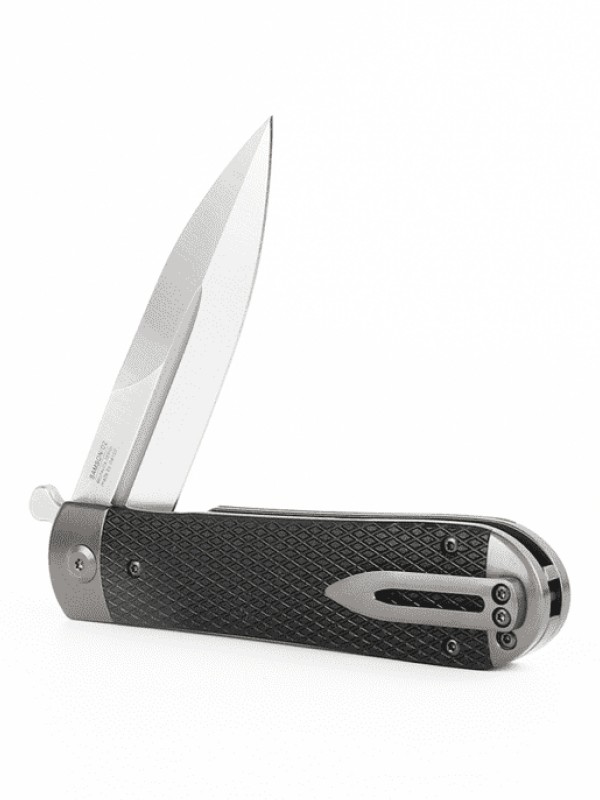 Нож Adimanti by Ganzo Samson – это компактный флиппер, чей клинок надежно запирается в открытом и закрытом положениях. Рукоять инструмента имеет стальную основу с двумя текстурированными накладками из G10 – прочного стеклотекстолита, который высоко ценится за свою стойкость к ударам и механическим повреждениям. В отличие от дешевого пластика, на стеклотекстолите не образовываются микротрещины после продолжительного воздействия низких температур. Материал также не деформируется в случае долгого нахождения под прямыми лучами солнца, не выцветает и не скользит в ладони.