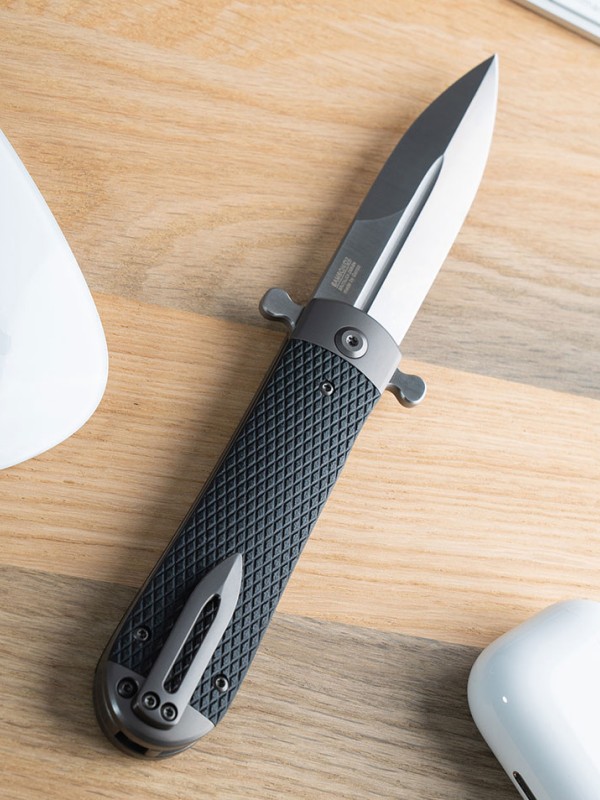 Клинок имеет форму Spear-Point с фальшлезвием со стороны обуха. С такой копьевидной формой легко выполнять колющую работу, когда нужно что-то подковырнуть, наколоть или тонко надрезать. С базовым задачами клинок эффективно справляется за счет своей длины в 94 миллиметра и толщины, составляющей 3.5 миллиметра.