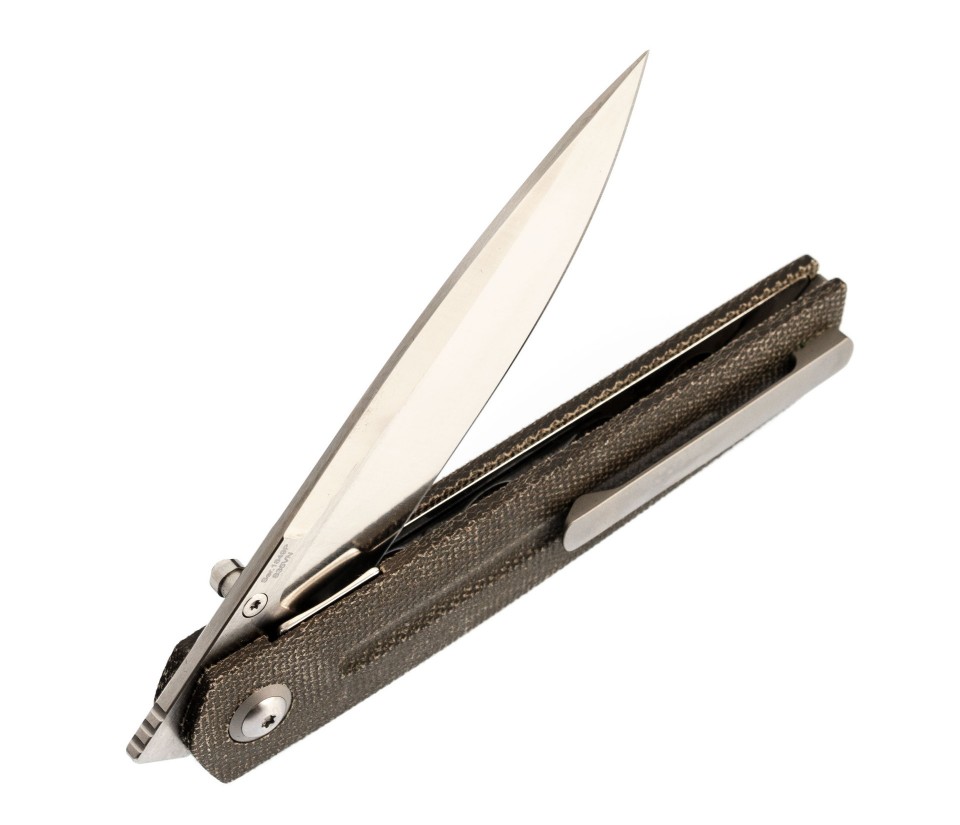 Рукоять из Green Micarta имеет уникальныую текстуру, которая также улучшает хват. Система замка liner lock надежно удерживает лезвие в развернутом состоянии и легко освобождает его, когда вы готовы его закрыть. На рукоятке имеется карманная клипса для правой руки, а также отверстие для шнурка или страховочной петли.