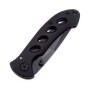 Рукоять алюминиевая, а перфорация значительно уменьшает общий вес ножа. Клипса позволяет зафиксировать нож при ношении, также имеет чёрный цвет и перфорацию.