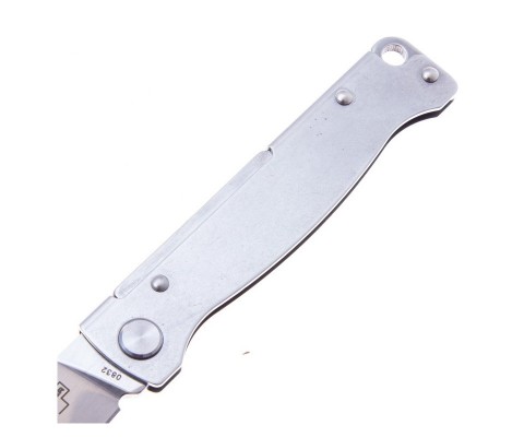 Клинок в форме Drop-Point из стали 12C27 легко открывается и надежно фиксируется замком Slip-Joint.