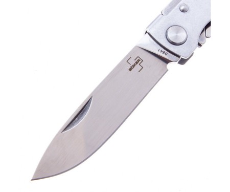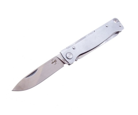Клинок в форме Drop-Point из стали 12C27 легко открывается и надежно фиксируется замком Slip-Joint.