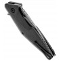 Отличается данное складное изделие оригинальным дизайном, выполняется черным цветом. Черный карбон в рукоятке, Acid Stonewash специальный тип лезвийного покрытия, обеспечивающей черный цвет и матовость клинка. Изготовление лезвия осуществляется из стали инструментальной, имеющей 60 – 61 единицу прочностных показателей. Интересная и немного изогнутая форма рукояти из карбона отличается шероховатым типом матовой поверхности.