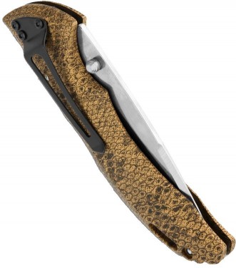 Экономичный ассортимент ножей от BUCK. Портативный нож Buck Bantam BHW Copperhead выделяется своей легкостью, его вес составляет всего 88 грамм. Рукоятка целиком сделана из удароустойчивого пластика и не имеет стальных лайнеров. За счет этого аспекта и достигается невысокая стоимость продукта. Отрицательной стороной ножа является то, что его не получится сложить одной рукой. Если попытаться это совершить одной рукой, то можно поранить руку. Остальное в ножах Buck не изменилось. Отстутствуют люфты и неисправности.