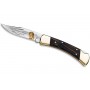 Buck 110 стал ножевой легендой на рынке. Относится к категории флагманских моделей, основанных в 1964 году. Покупателям предлагается лимитированный 500-штучный выпуск, который приурочен к пятидесятилетию модели. Отмечается отличная клиночная полировка «в зеркало», где можно увидеть отображение. Hoyt Heath Buck является основателем компании, его портрет изображается на данном клинке. Там выгравировано «Faith, Persistence, Integrity», что переводится верой, упорством и честностью. В соответствии с имеющимися технологиями, нож устаревший. Там отсутствует клипса, закрытие и открытие делается с помощью двух рук. При таких размерах имеется вес более чем 200 грамм. 110 считается очень продаваемым типом модели складных ножей на территории всего мира. Довольно часто изделие приобретается для осуществления подарка или в виде ретро аксессуара. Дизайн очень консервативный и строгий, показана ощутимая тяжесть, а также поразительный тип эффективности. Эти качества нравятся покупателям. Из S30V стали производится клиночный материал. Такая сталь является качественной и популярной в современном ножевом деле. Она по параметрам удержания заточки и прочности превосходит 440с тип стали.