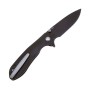 Рукоять из G10 чёрного цвета имеет удобную и эргономичную форму, её удобно держать в руке, за счёт подпальцевой выемки осуществлять контроль реза очень удобно. Рукоять также оснащена удобной клипсой.