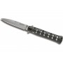 CS Ti-Lite 4" стал тонким и острым инструментом, изящно дополненный рукояткой из 7050 алюминия с большим количеством симметрических отворов по длине. Они позволяют значительно облегчить ножевой вес и выполняют декоративную функцию. Liner Lock располагается между стальными лайнерами и выполняет роль эффективного запирающего механизма. Имеется почти незаметный тип карманной клипсы. Она расположена на пятке, от рукоятки по правую сторону, позволяет использовать положение Tip-Up при ношении ножа.