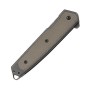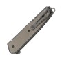 Раскрытие ножа происходит при помощи флиппера. Рукоять из стали и вставками из стеклотекстолита G10. Нож имеет карманную клипсу глубокой посадки для фиксации при ношении, а также проушину для крепления темляка или бусины.