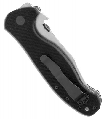 Механизмом фиксации лезвия служит титановый замок Liner-Lock. В рабочее положение нож ставится при помощи механизма Wave, запатентованного компанией, и имеющего диск на верху клинка. Поверхность рукояти текстурирована для исключения возможности соскальзывания пальцев во время работы. В комплекте имеется съемная клипса.
