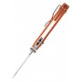 Раскрытие клинка происходит с помощью шпенька. Лезвие распахивается при помощи большого пальца и легкого взмаха запястьем. Благодаря замку Button Lock модель не раскрывается в кармане и защищена от случайного закрытия во время силовой нагрузки. Модель не только удобна в управлении, но и имеет компактные размеры. Общая длина в раскрытом виде составляет 15,5 см. В конструкцию ножа добавлена металлическая клипса, которая помогает зацепить нож за карман или на ремень.