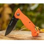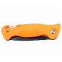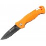 Ручка эргономичной формы отлично ложится в руку. Она сделана из прочного пластика черного цвета. Интегрированный в ручку свисток выделяет эту модель среди других. Этот дополнительный аксессуар может стать незаменимым в экстремальных ситуациях. Не менее полезным будет карабин, имеющийся на ручке. С его помощью нож легко крепится к поясу или снаряжению, и также легко отстегивается. Модель G611 будет очень полезна для туристов и рыболовов.