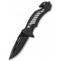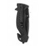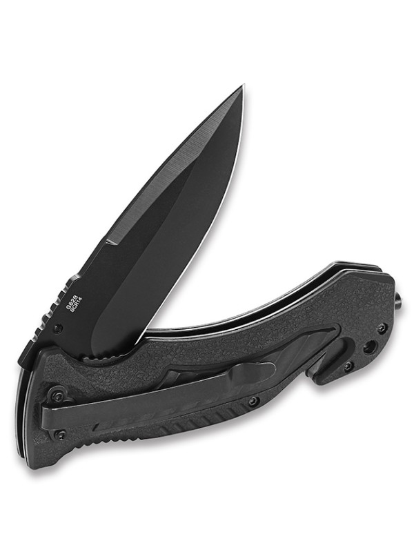 Рукоять изготовлена из полипропилена (PP) и алюминия, что придает ей прочность и легкость. Полипропилен хорошо сопротивляется влаге, высоким температурам, коррозии и слабым щелочным и кислотным растворам. В рукоять также интегрированы стропорез и стеклобой, которые могут пригодиться в экстремальных ситуациях. Модель может похвастаться не только стильным внешним видом, но и функциональностью и практичностью