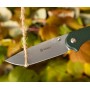 Ручка ножа сделана из стеклотекстолита G10. Это довольно крепкий материал, и он гарантирует удобство при работе с моделью, а также демонстрирует стойкость к разного рода внешним факторам. Ручка эргономичной формы, удобная при захвате. Поверхность рукояти текстурированная, благодаря чему изделие надёжно удерживается в руке при любых условиях. Металлическая клипса даёт возможность фиксировать нож, и носить его на кармане, на поясе либо прикрепить к сумке. Здесь есть отверстие для темляка.